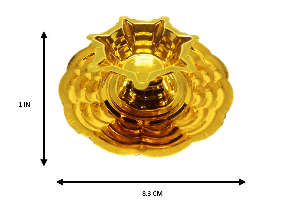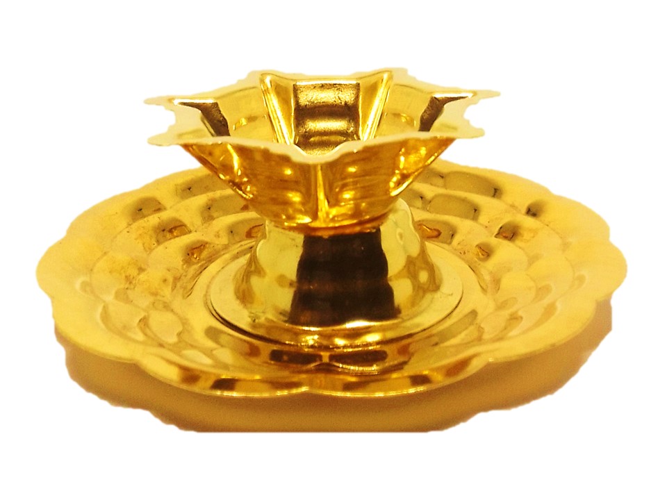 Brass Table Oil Lamp — 7 Star (7 Mukh, 7 Thread) with Plate | Golden Brass | Same Day Shipping